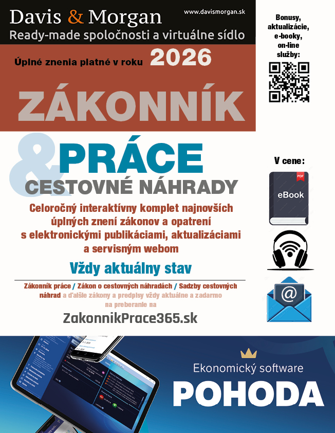 Úplné znenia zákonníku práce, zákona o cestovných náhradách a sadzieb cestovných náhrad platných v roku 2026 v praktickom interaktívnom komplete s webovou stránkou, e-bookom a aktualizačným servisom.